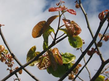 • Large heart shaped leaves which are slightly bronze when young and then turning dark green.