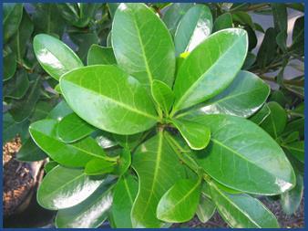 - Large, leathery, oblong dark green leaves.